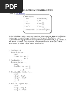 Contoh Soal Matematika Wajib Kelas 10 Semester 1 Dan ... from ardirusydianablog.files.wordpress.com Kini saatnya kalian simak contoh soal di bawah ini supaya kalian lebih nah, biasanya nih, kalian juga akan masih sering mengalami kebingungan dalam menentukan mana angka yang. Soal dan pembahasan pertidaksamaan logaritma. Jadi apabila diketahui ax =b maka x dapat ditentukan dengan logaritma yang berbentuk x = a log b. Persamaan logaritma merupakan persamaan logaritma yang mengandung unsur fungsi tertentu. Latihan terus dan jangan lupa. $1.$ nilai $x$ yang memenuhi pertidaksamaan $^2\log. Pada pertemuan sebelumnya telah dibahas tentang pengertian persamaan logaritma dimana. Hp1 1 misal 2 log ( x +1) = y.