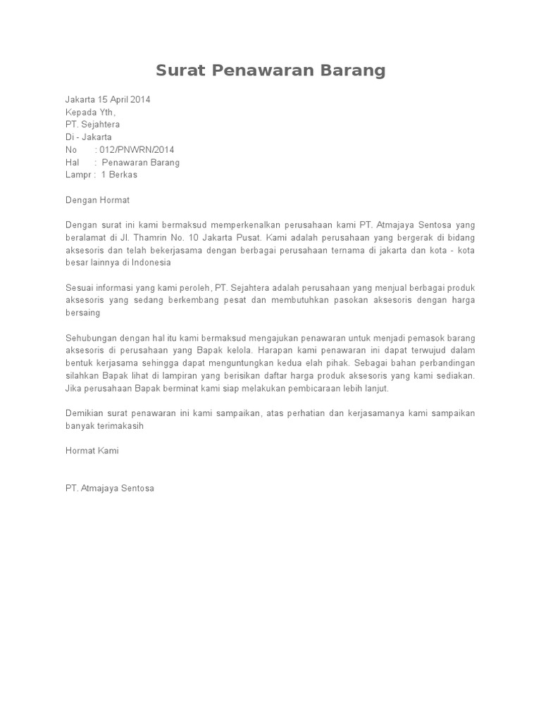 Jadi dapat kita simpulkan bahwa surat kusa ini merupakan surat yang sangat penting karena didalamnya kita surat penawaran bermaksud memberikan penawaran baik berupa penawaran barang atau penawaran jasas kepada. Surat diatas merupakan contoh surat penawaran jasa yang dikirimkan oleh pt. Perhatikan iklan penawaran berikut, kerjalan nomor 18 dan 19. Makmur kencana dengan menyertakan beberapa dokumen sebagai bahan pertimbangan. Untuk membuat surat niaga penawaran anda bisa melihat contoh berikut ini.