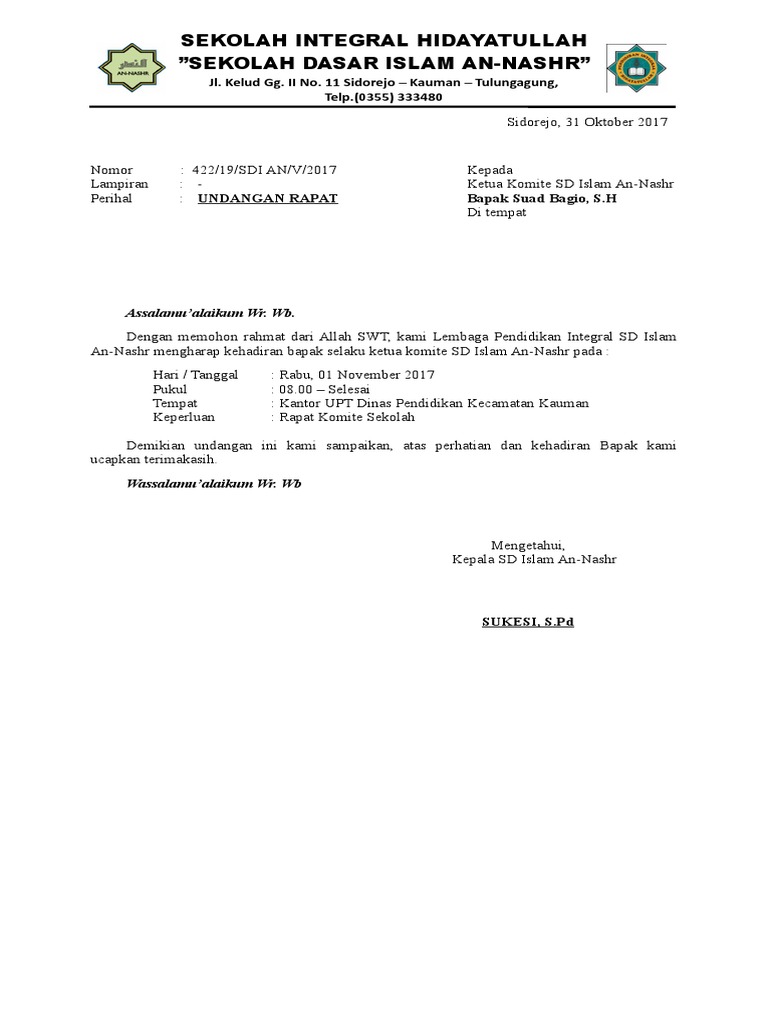 Contoh Surat Undangan Rapat Komite Sekolah Sd : Contoh Surat Undangan Rapat Komite Sekolah Untuk Wali Murid Audit Kinerja - Contoh surat undangan rapat resmi.. 10 contoh surat undangan rapat terlengkap contoh surat. Contoh surat undangan, karang taruna, acara isra miraj, syukuran. Sebagai sebuah organisasi, seringkali osis melakukan berbagai kegiatan yang bertujuan untuk mengundang osis dari sekolah lain untuk. Surat undangan sendiri terdiri dari surat undangan resmi dan surat undangan tidak resmi. Contoh surat undangan rapat resmi.